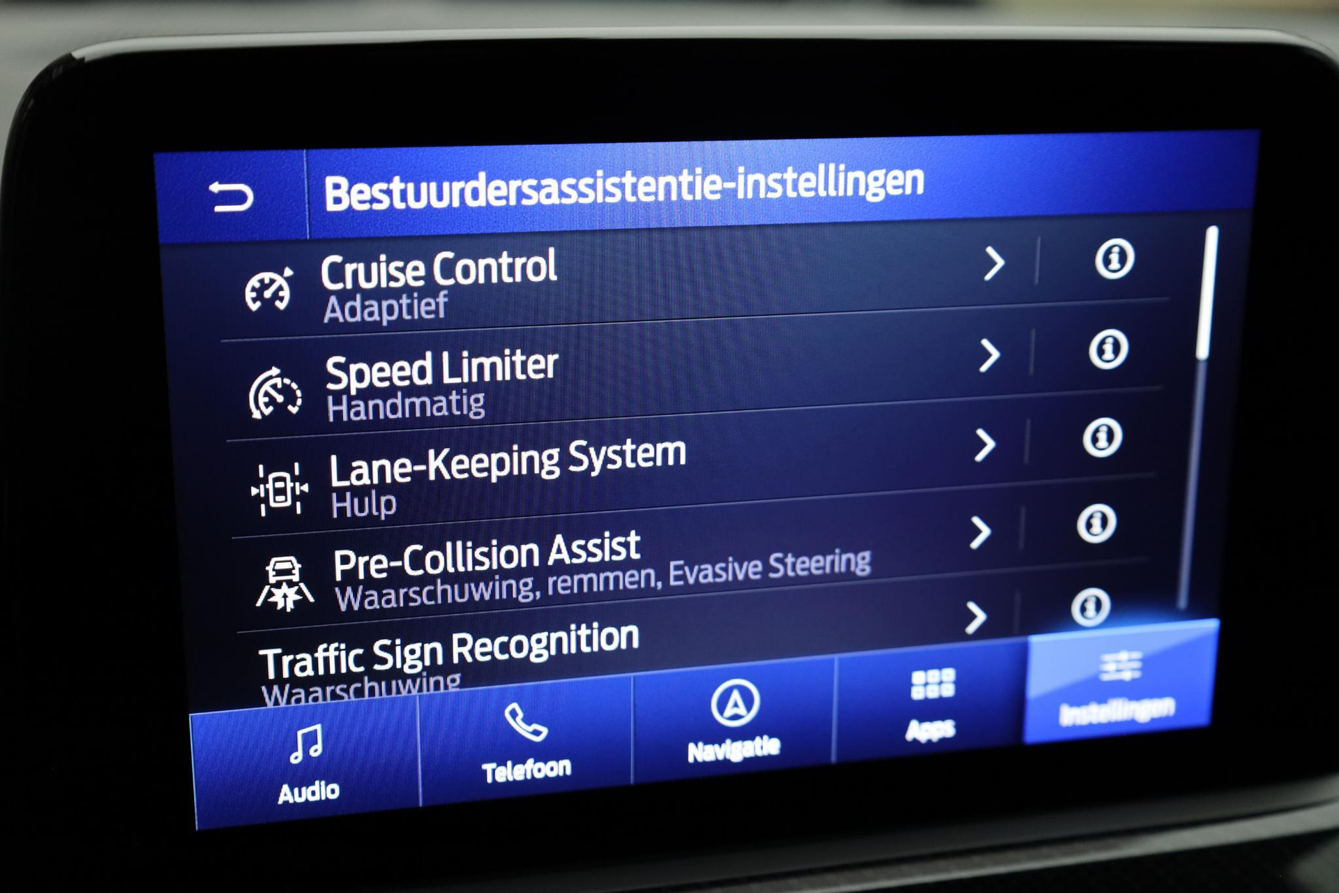 Tijdens de rit wordt u als bestuurder ondersteund door verschillende systemen die de weg en uw omgeving in de gaten houden. Verkeersbord-detectie herkent verkeersborden en toont deze op het instrumentarium van de auto. Het Lane-keeping systeem registreert permanent of u binnen de lijnen van de rijstrook blijft; dwaalt u onbedoeld af, dan waarschuwt het systeem en corrigeert de koers. Forward collision warning waarschuwt voor een kop-staart botsing. De auto is ook uitgerust met dodehoekdetectie, hill hold functie, vermoeidheidsherkenning, autonoom remsysteem en bandenspanningcontrolesysteem.