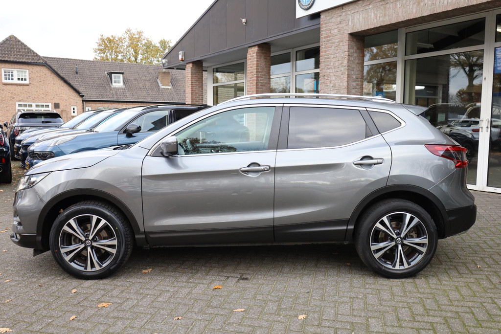 Met de 360 graden camera op deze auto wordt parkeren in smalle parkeerplekken een makkie dankzij het optimale zicht dat het apparaat levert. In deze Qashqai vindt u schakelaars op het stuur om het full map navigatiesysteem te bedienen en het audio-installatiesysteem met DAB-ontvangst. De auto is ook uitgevoerd met automatische airconditioning. De meeste schade bij inparkeren komt van een randje of paaltje dat u even niet zag. Maar de parkeersensoren zien alles en waarschuwen op tijd. Om de veiligheid onderweg te verhogen, heeft deze Nissan zowel een automatisch inschakelbare verlichting als een regensensor aan boord, zodat hij zelf de verlichting en de ruitenwissers kan inschakelen. Met cruise control, keyless entry, automatisch dimmende binnenspiegel en lederen stuur en versnellingspook is deze auto helemaal compleet.