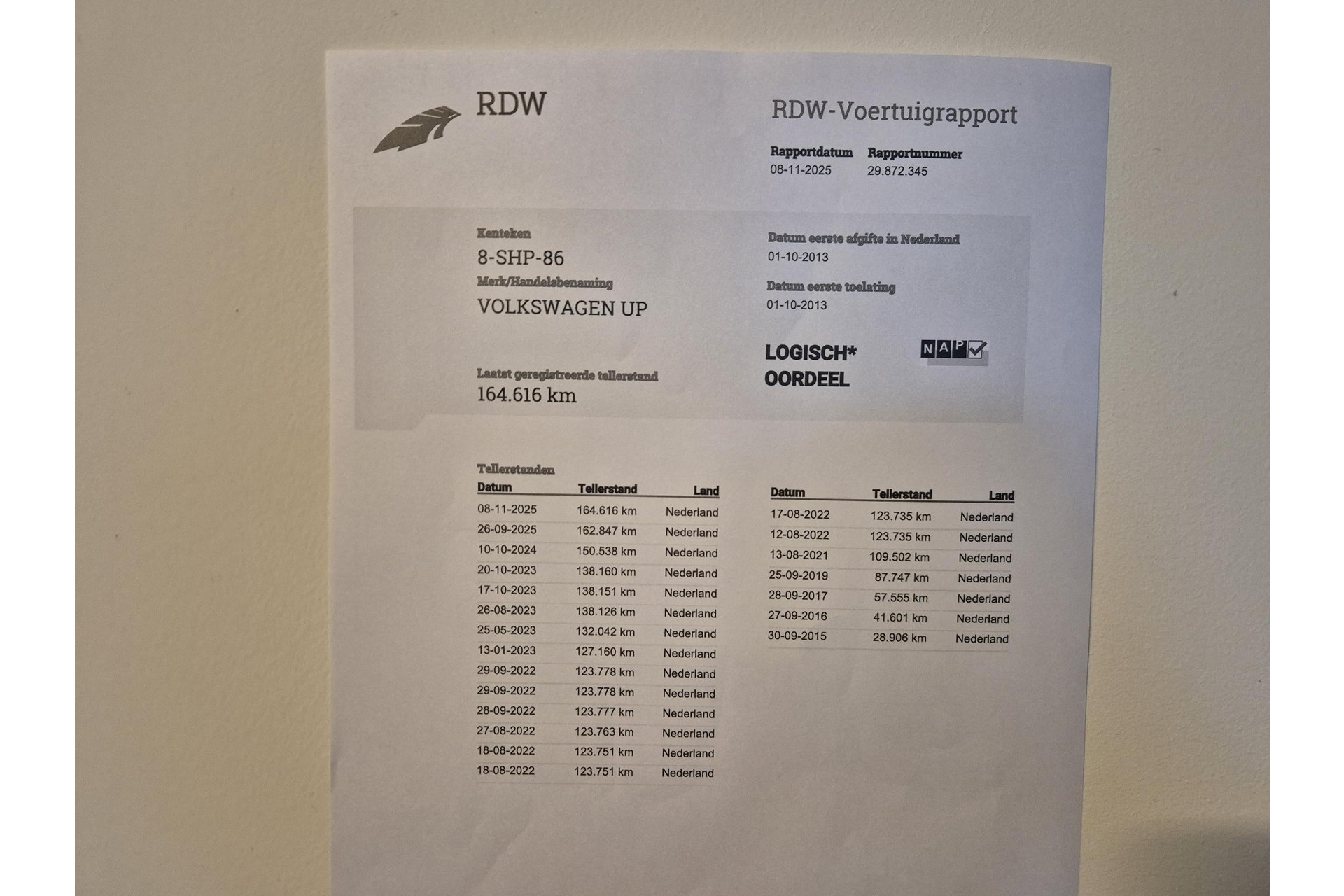 | Kilometerstand | 164.634km |