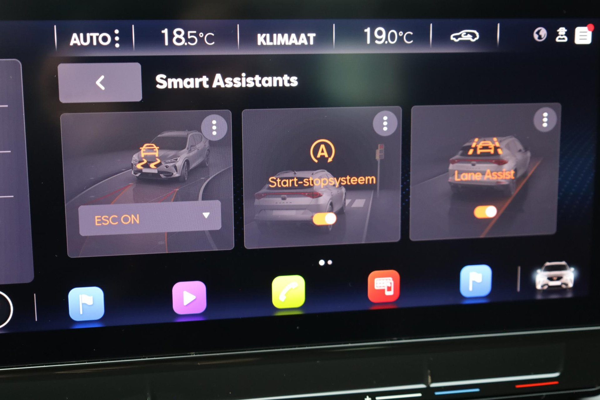 In de CUPRA Formentor heeft uw veiligheid en die van uw omgeving prioriteit. U rijdt ook veiliger omdat deze auto voor u de verkeersborden langs de weg kan lezen. De belangrijkste borden worden op uw instrumentarium geprojecteerd, zodat u ze niet kunt missen. Onbedoeld buiten de rijstrook raken wordt voorkomen door het Lane-keeping systeem. Het forward collision warning-systeem waarschuwt indien een botsing dreigt met een voorliggend of tegemoetkomend voertuig. Dankzij veiligheidsvoorzieningen als dodehoekdetectie, hill hold functie, vermoeidheidsherkenning, autonoom remsysteem en bandenspanningcontrolesysteem, bent u steeds veilig onderweg.