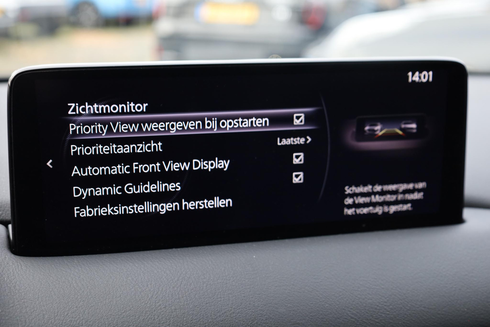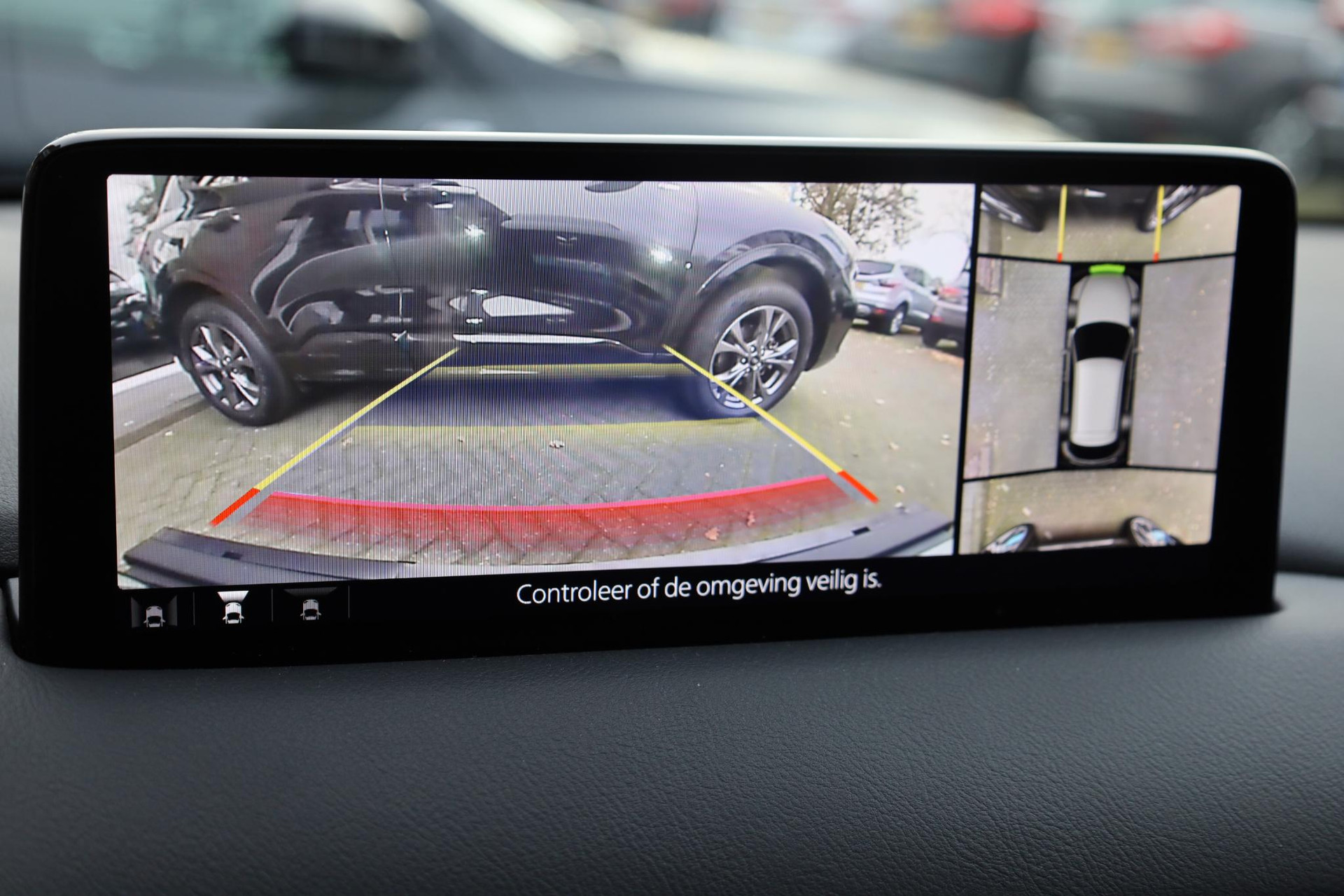De 360 graden camera op deze auto wordt verzorgd door vier geavanceerde camera's. Het biedt garantie van uitstekende beeldkwaliteit. Adaptive cruise control houdt de ingestelde snelheid vast en houdt automatisch afstand tot uw voorligger. De aanwezige file assistent meet de afstand tot uw voorligger en zorgt voor een veilige afstand. Staat het voor u opeens stil? Dan zorgt het systeem dat de auto ook stopt. Mocht zich een probleem voordoen, dan krijgt u via remote services op uw smartphone te zien wat er precies aan de hand is, waar u ook bent. De sensatie van superieur geluid wordt geleverd door het high performance audiosysteem. Ook is de Mazda uitgerust met: dashboard met spraakbediening, full map navigatiesysteem, achteropkomend verkeer waarschuwing, electronic climate control, draadloos opladen en DAB ontvangst.
