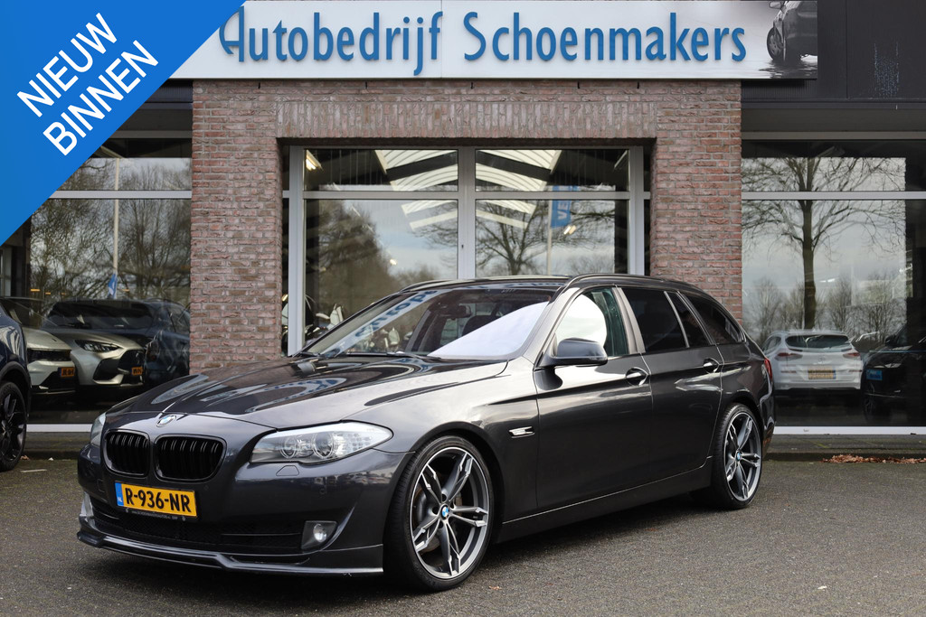 Ontdek de vele kwaliteiten van de BMW 5-serie Touring. Met zijn tijdloze design, zijn krachtige motor en zijn vele veiligheidssystemen laat deze auto u versteld staan. Dankzij de zescilinder benzinemotor en de automatische transmissie, is het autorijden snel en comfortabel. De stijlvolle, luxe uitstraling is inbegrepen in de vorm van leren bekleding. Er is een rijke uitrusting aanwezig in deze auto, waar onder meer ook stoelverwarming bij hoort. Met de krachtige xenonverlichting heeft u optimaal zicht in het donker. Bij de rijke uitrusting horen ook 20 inch lichtmetalen velgen en extra getint glas.