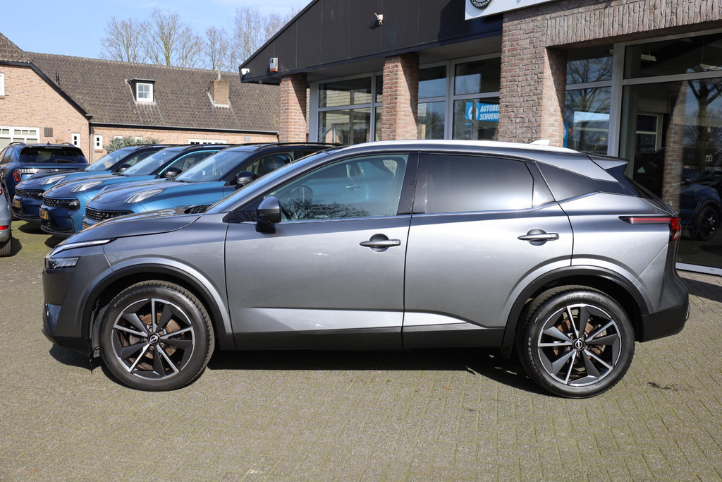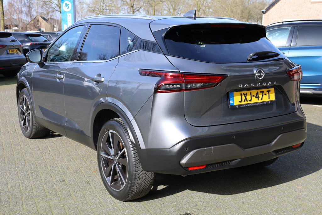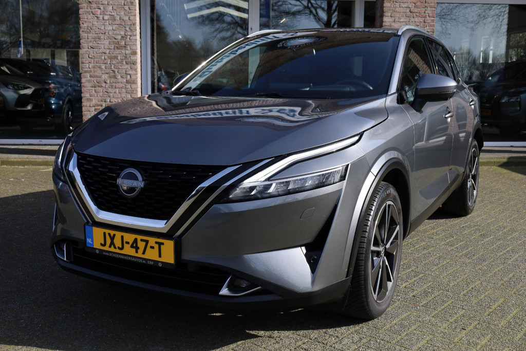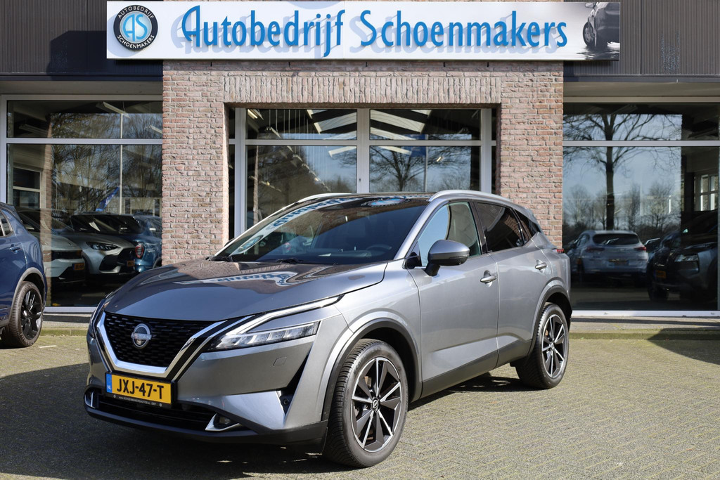 Ontspannen en zorgeloos autorijden, dat doet u met deze Nissan Qashqai. In deze auto vindt u een benzinemotor en een automatische transmissie. Deze Nissan is voorzien van een mooie en comfortabele lederen bekleding. Lekker hoor, die verwarmbare voorstoelen. Helemaal op koude dagen. Bovendien krijgen uw rug en die van uw bijrijder desgewenst extra aandacht door de massagefunctie. Een handige voorziening op deze auto is de elektrische achterklep die u op afstand kunt openen. In weer en wind een cabriosensatie? Dat kan met het riante glazen panoramadak. Het verwarmbare stuurwiel is een teken van ultieme luxe. Deze voorziening is een topklasse auto waardig. De koplampen zijn voorzien van matrix LED-verlichting waarmee u aanzienlijk verder kan kijken in het donker. Het systeem past zelf de lichtstraal aan op het moment tegenliggers verblind kunnen worden. Bij de zeer complete uitrusting van deze auto behoren ook 19 inch lichtmetalen velgen, dakspoiler, extra getint glas, in delen neerklapbare achterbank, LED-achterlichten en verstelbare lendensteunen.