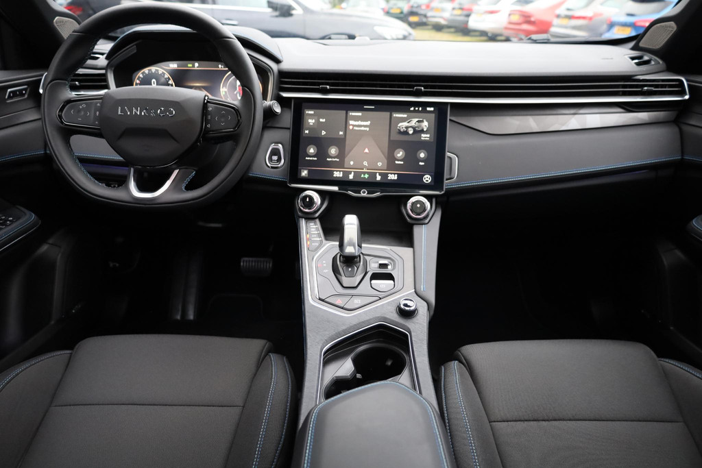 Alle ritinformatie en communicatie is gebundeld in één overzichtelijk digitale dashboard. Adaptive cruise control houdt de ingestelde snelheid vast en houdt afstand tot het voertuig voor u. De aanwezige file assistent meet de afstand tot uw voorligger en zorgt voor een veilige afstand. Staat het voor u opeens stil? Dan zorgt het systeem dat de auto ook stopt. Onderweg kunt u veilig genieten van het audio-installatiesysteem met DAB-radio en het full map navigatiesysteem. Want in deze Lynk & Co bedient u ze vanaf het stuurwiel of met uw stem. Onderweg de accu van uw smartphone opladen gaat zonder snoeren en stekkers. U plaatst 'm simpel in de draadloze oplaadmogelijkheid voor telefoons en klaar! Met achteropkomend verkeer waarschuwing, automatische airconditioning, parkeersensoren achter, regensensor, keyless entry en automatisch dimmende binnenspiegel is deze auto helemaal compleet.