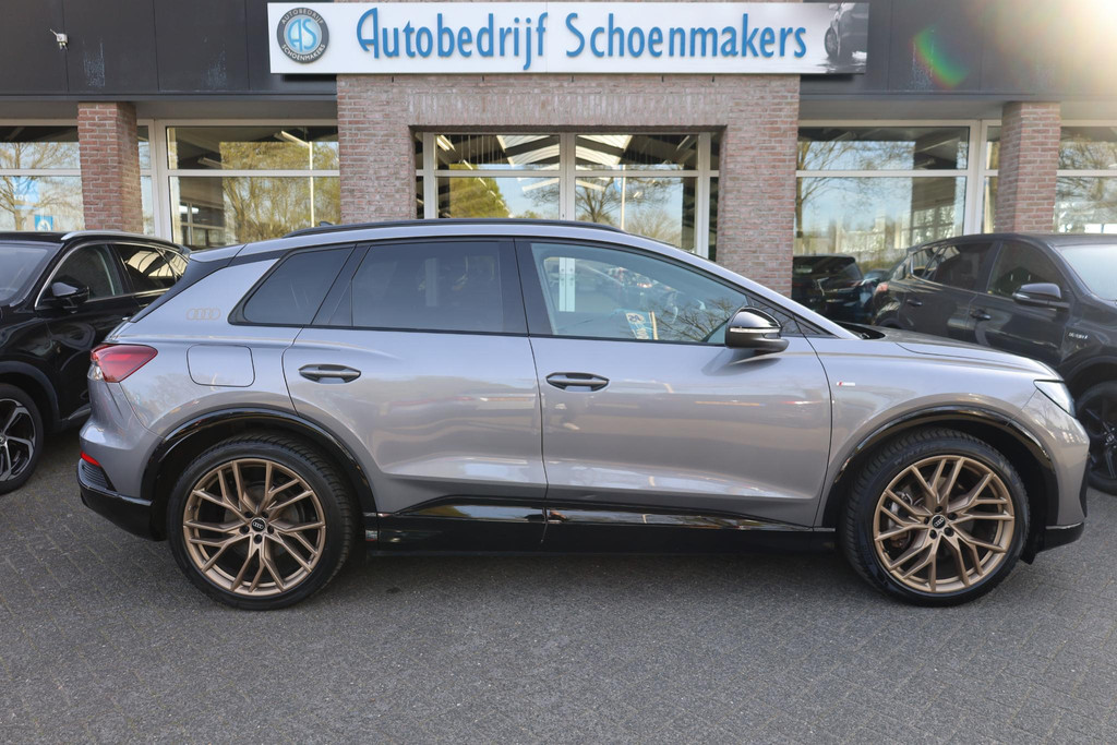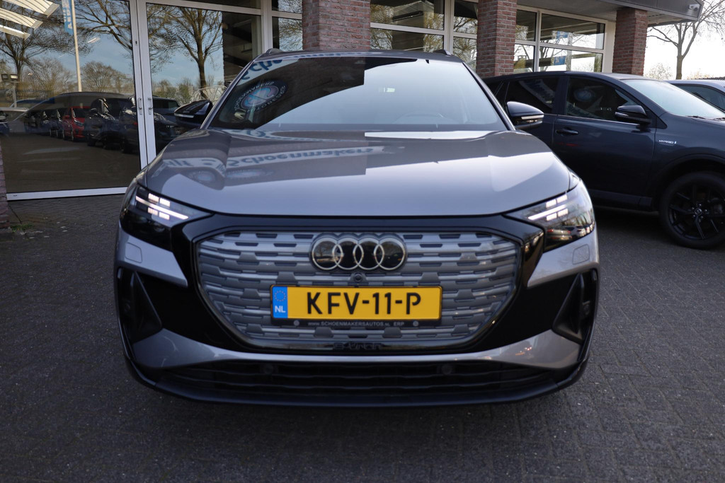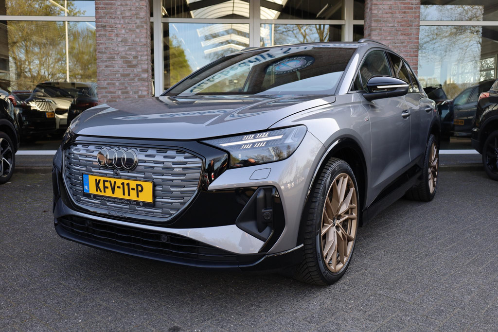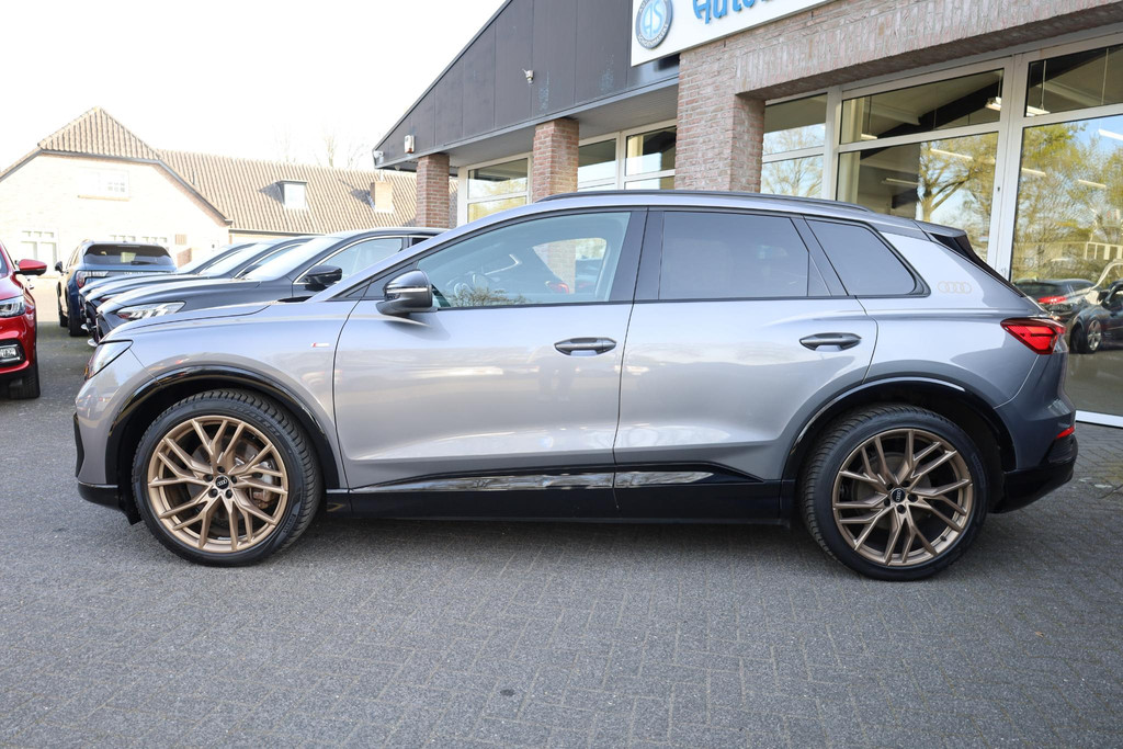 Sportieve prestaties zonder motorgeluid. Ervaar de stille kracht van elektrisch rijden met deze Audi Q4 e-tron. U hoort slechts het lichte gezoem van de elektromotor tijdens het rijden. Houdt u van een sportieve, dynamische uitstraling? Dan komt de S-Line styling als geroepen. Koude start? Niet met de verwarmbare voorstoelen! Altijd een goede zitpositie bij iedere snelheid, dankzij de sportstoelen. De elektrisch bedienbare achterklep opent met een druk op de knop. De geavanceerde matrix LED-verlichting in de koplampen levert maximaal helder zicht en past zich subtiel aan zodra er een tegenligger komt. Zonder lichtkwaliteitsverlies! Bij de uitrusting van deze Audi horen onder meer 21 inch lichtmetalen velgen, sportonderstel, zwarte hemelbekleding, neerklapbare achterbank en LED-achterlichten.