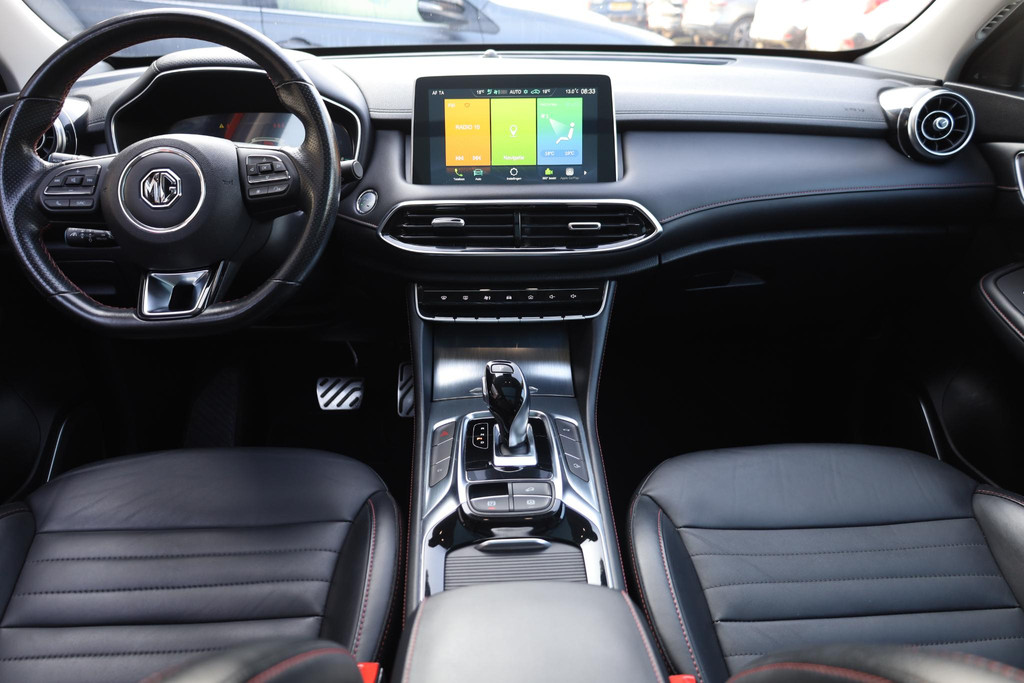Rijfuncties worden glashelder en overzichtelijk weergegeven via het digitale dashboard. Dankzij de 360 graden camera kunt u zowel de voor- als achterzijde van het voertuig in het oog houden, wat bijdraagt aan een veiligere rijervaring. Adaptive cruise control is veilig en comfortabel. De snelheidsregelaar houdt automatisch afstand tot het voertuig dat voor u rijdt. Connected Services zorgen ervoor dat de belangrijkste functies en data van de auto altijd en overal te checken zijn. Gewoon via de app op de smartphone. Onderweg kunt u veilig genieten van het audiosysteem met DAB-radio en het full map navigatiesysteem. Want in deze MG bedient u ze vanaf het stuurwiel. Met electronic climate control, regensensor, keyless entry, automatisch dimmende binnenspiegel en lederen stuur is deze MG helemaal compleet.