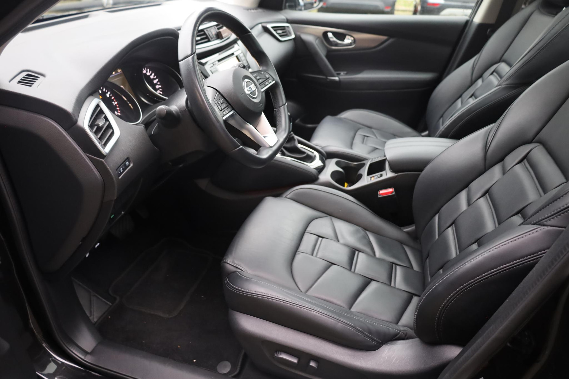 De kracht van de 360 graden camera op deze auto resulteert in optimale zichtbaarheid en veiligheid. Adaptive cruise control is veilig en comfortabel. De snelheidsregelaar houdt automatisch afstand tot het voertuig dat voor u rijdt. Dankzij de spraaksturing bedient u verschillende functies zonder uw handen van het stuur te halen. Wegwijs in elke wijk, stad of reisbestemming? Daarvoor zorgt het full map navigatiesysteem! Of het buiten nu warm is of koud, dankzij automatische airconditioning is het binnen altijd behaaglijk. Deze Nissan is voorzien van DAB ontvangst, regensensor, keyless entry, automatisch dimmende binnenspiegel en lederen stuur en versnellingspook.