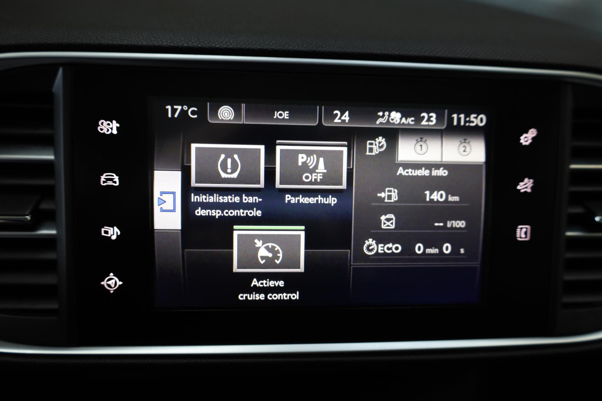 Een vergeten muurtje, een verborgen paaltje? Dat gebeurt niet meer, dankzij de achteruitrijcamera. Handig en veilig: Connected Services. Alle vitale functies en data van de auto checkt u via de app op uw smartphone. Deze Peugeot is voorzien van knoppen op het stuur om het full map navigatiesysteem en het audio-installatiesysteem te bedienen. De electronic climate control zorgt voor een behaaglijk klimaat in de auto. Natuurlijk is een complete auto als deze ook voorzien van sensoren die de omgeving in de gaten houden. Deze Peugeot heeft niet alleen een automatisch inschakelbare verlichting aan boord, maar ook een regensensor. Met cruise control, automatisch dimmende binnenspiegel, lederen stuur en centrale deurvergrendeling met afstandsbediening is deze Peugeot helemaal compleet.