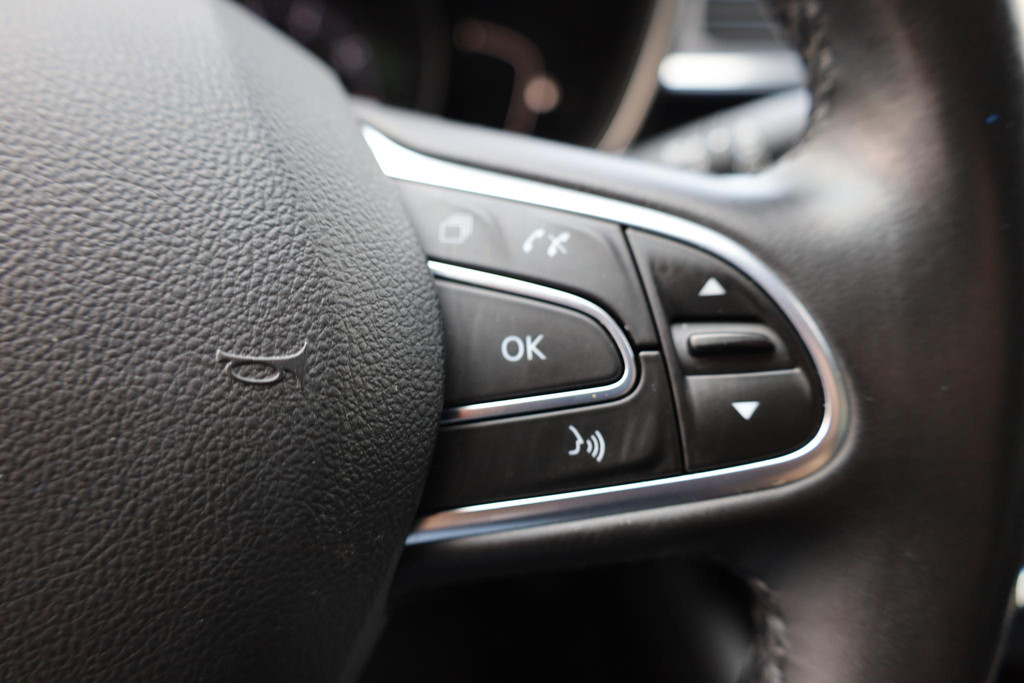 De achteruitrijcamera geeft u duidelijk zicht op de ruimte achter de auto. Met adaptive cruise control houdt de auto zelfstandig afstand tot uw voorligger. Een veiligheidsverhogende optie waarmee u comfortabel onderweg bent. Slimme spraakbesturing herkent gesproken opdrachten en voert ze uit. De luidsprekers van het high performance audiosysteem omringen u met een uitgebalanceerd geluid. Waarheen gaat de reis? Het full map navigatiesysteem brengt u trefzeker ter plekke! Met automatische airconditioning, DAB ontvangst, regensensor, keyless entry, automatisch dimmende binnenspiegel en lederen stuur is deze Renault helemaal compleet.