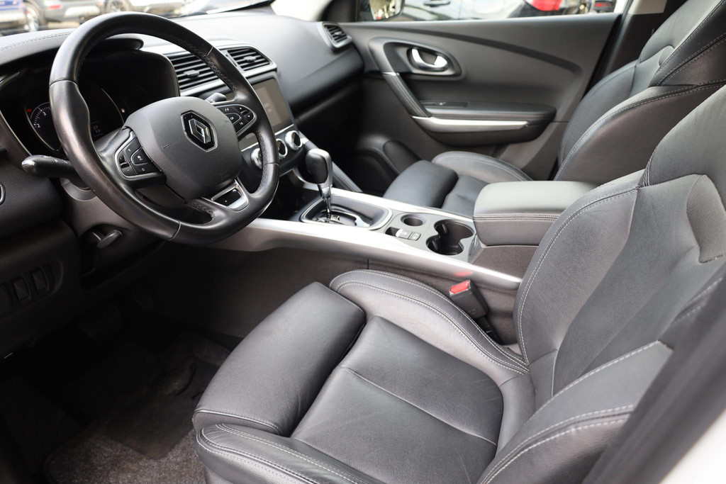De Renault Kadjar is gebouwd met hoogwaardige techniek en maakt het rijden van lange ritten, maar ook korte stukjes, tot een feestje. De aandrijving van deze Renault wordt verzorgd door een viercilinder benzinemotor en een automatische transmissie. Binnenin zien we een fraai afgewerkt lederen interieur. Onderdeel van de uitgebreide uitrusting van deze auto is stoelverwarming. Het panoramadak geeft extra sfeer aan het interieur en biedt een prachtige doorkijk naar buiten. Bij de uitrusting van deze Renault horen onder meer 19 inch lichtmetalen velgen, LED koplampen, extra getint glas, in delen neerklapbare achterbank, LED-achterlichten en verstelbare lendensteunen.