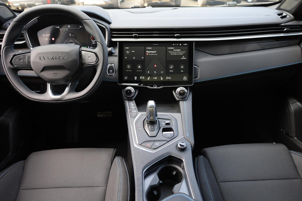 Alle ritinformatie en communicatie is gebundeld in één overzichtelijk digitale dashboard. Adaptive cruise control houdt de ingestelde snelheid vast en houdt afstand tot het voertuig voor u. De aanwezige file assistent meet de afstand tot uw voorligger en zorgt voor een veilige afstand. Staat het voor u opeens stil? Dan zorgt het systeem dat de auto ook stopt. Onderweg kunt u veilig genieten van het audio-installatiesysteem met DAB-radio en het full map navigatiesysteem. Want in deze Lynk & Co bedient u ze vanaf het stuurwiel of met uw stem. Onderweg de accu van uw smartphone opladen gaat zonder snoeren en stekkers. U plaatst 'm simpel in de draadloze oplaadmogelijkheid voor telefoons en klaar! Met achteropkomend verkeer waarschuwing, automatische airconditioning, parkeersensoren achter, regensensor, keyless entry en automatisch dimmende binnenspiegel is deze auto helemaal compleet.