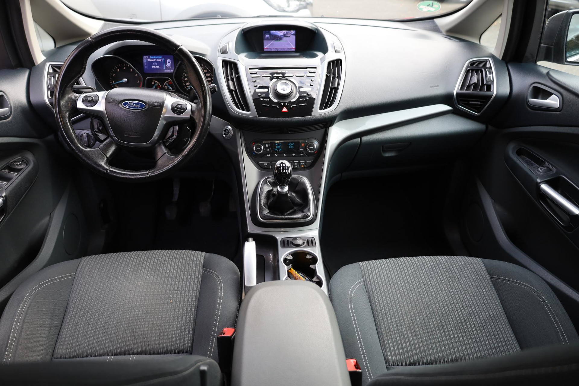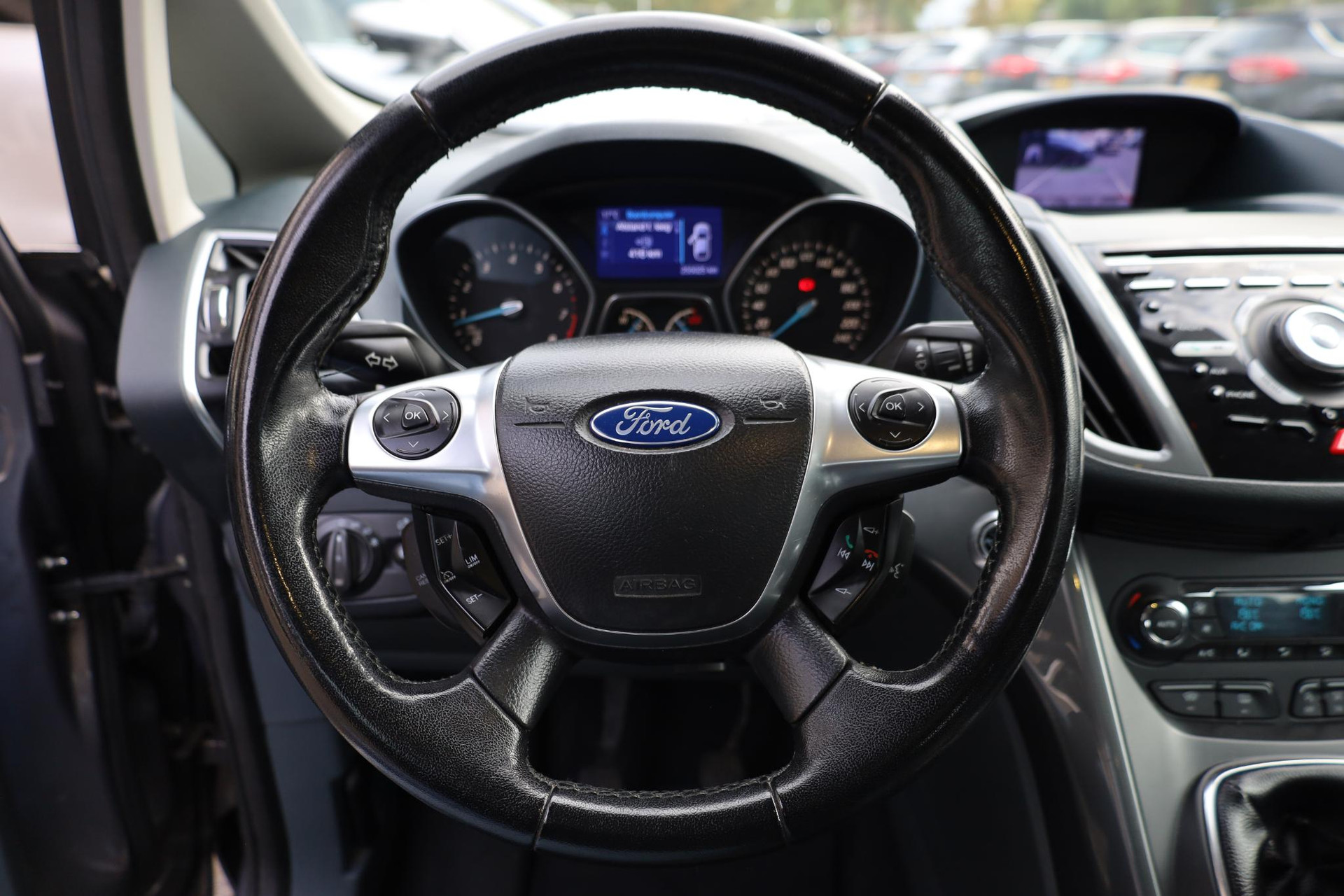 Afstand schatten bij het achteruitrijden? Niet nodig. U weet het precies, dankzij de achteruitrijcamera. Altijd een deskundige gids aan boord, dankzij het navigatiesysteem. U verwacht natuurlijk automatische airconditioning in deze auto, en die is er dan ook. Het hoort bij een intelligente auto als deze dat hij zelf in staat is om zijn omgeving in de gaten te houden. Dat doet deze Ford met een automatisch inschakelbare verlichting en een regensensor. De cruise control heeft een feilloos geheugen. Als u even vaart heeft geminderd, bent u na één klik weer op de oude snelheid. Ook automatisch dimmende binnenspiegel, lederen stuur en versnellingspook en centrale deurvergrendeling met afstandsbediening zijn aan boord.