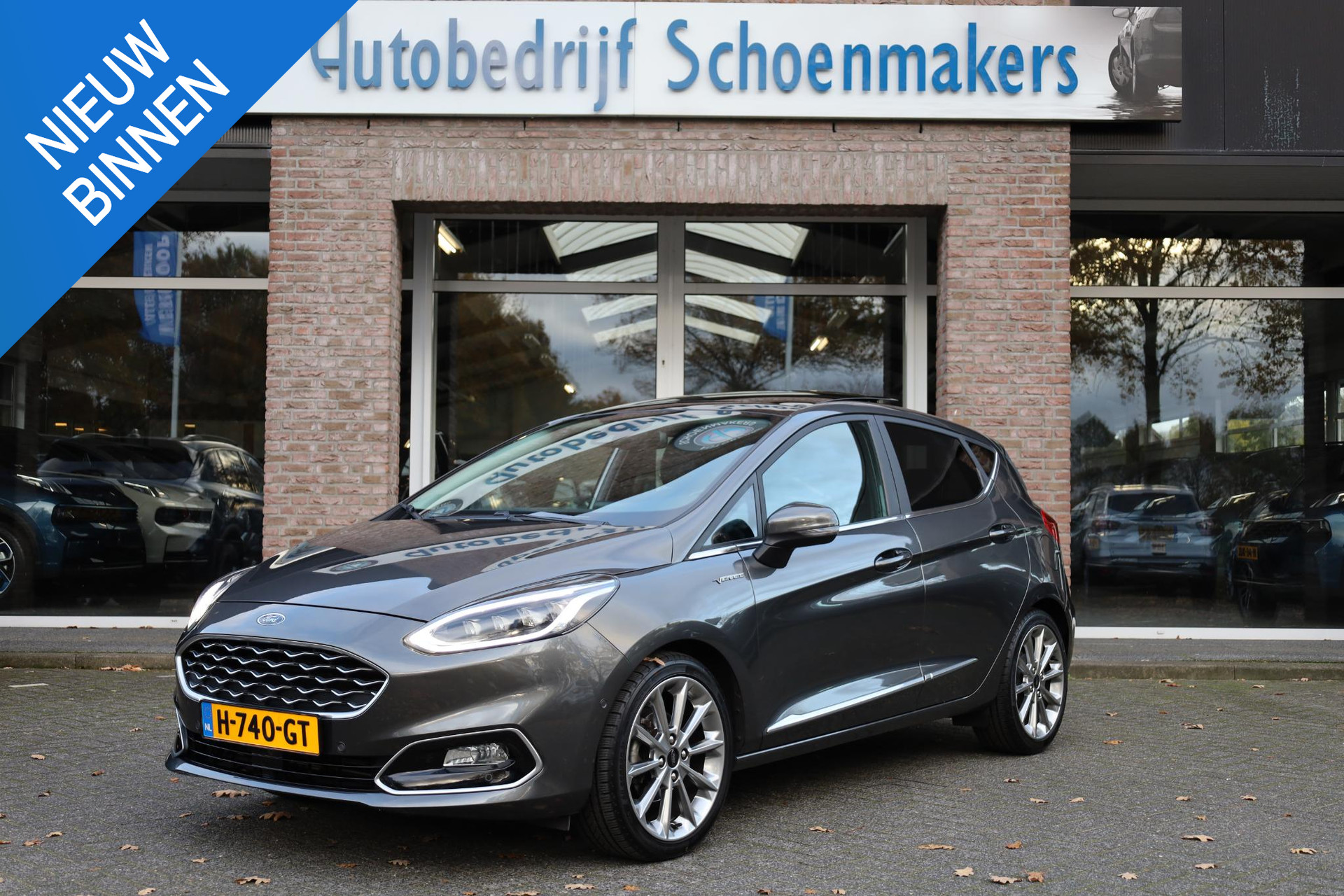 Alle technologie in de Ford Fiesta is er op gericht om uw rit veilig en gemakkelijk te laten verlopen. Met zijn benzinemotor en automatische transmissie is dit een prima auto voor nog vele kilometers. Ook een fijne dosis klasse is bijgeleverd, met het lederen interieur. 's Winters komen de verwarmbare voorstoelen heerlijk van pas. Het elektrisch bediende glazenpanorama dak zorgt voor licht en gevoel van ruime. Als u de stuurverwarming inschakelt, geniet u van weldadige warmte voor uw handen en vingers. Tot de uitrusting behoren ook 17 inch lichtmetalen velgen, LED koplampen, donker getint glas achter, in delen neerklapbare achterbank, LED-achterlichten en verstelbare lendensteunen.