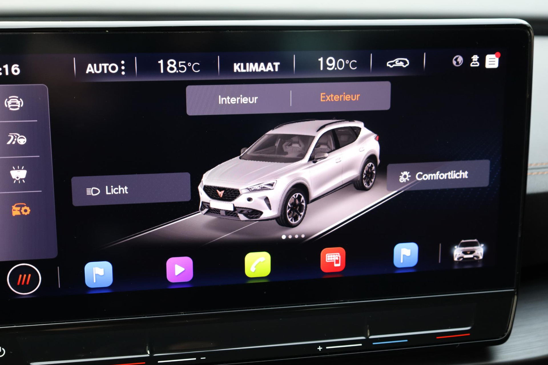 Elegante lijnen en een relatief groot glasoppervlak geven deze CUPRA Formentor zijn stijlvolle uitstraling. De ledkoplampen benadrukken dat nog eens, ze schijnen krachtig in het donker. Met zijn uitgekiende onderstel en slimme veiligheidssystemen biedt deze auto u te allen tijde veilig en comfortabel rijplezier. In deze auto vindt u een benzinemotor en een automatische transmissie. Op koude en donkere dagen zijn de verwarmbare voorstoelen een uitkomst. Mooi om te zien en heerlijk om in te zitten zijn de sportstoelen, die u onderweg optimale ondersteuning geven. Hoe koud het buiten ook is, het verwarmbare stuurwiel brengt uw handen en vingers snel weer op temperatuur. Natuurlijk behoren 18 inch lichtmetalen velgen, Full LED koplampen, extra getint glas, in delen neerklapbare achterbank, LED-achterlichten en verstelbare lendensteunen ook tot de uitrusting van deze complete auto.