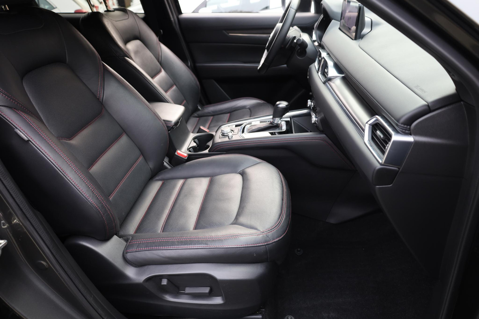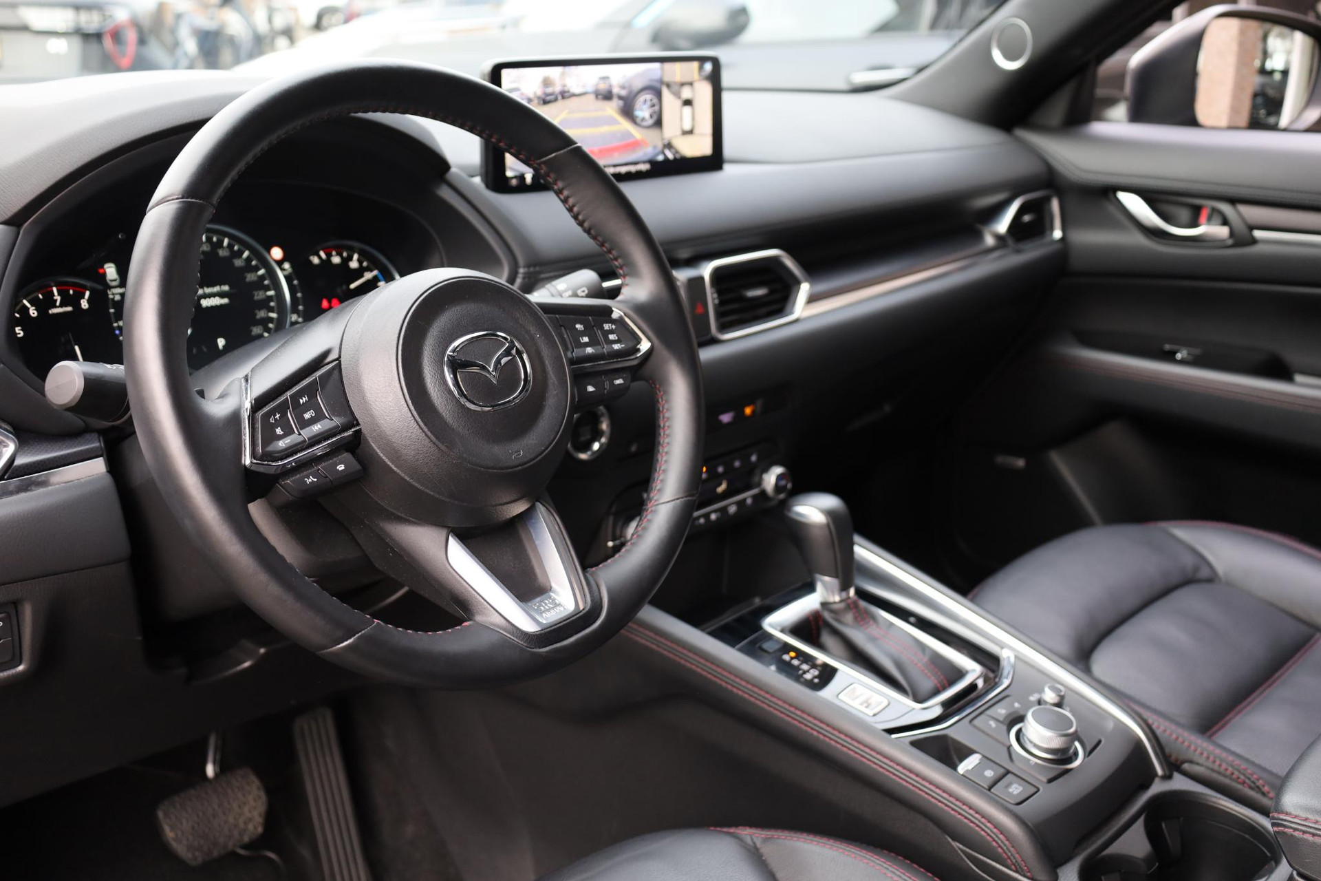 De 360 graden camera op deze auto wordt verzorgd door vier geavanceerde camera's. Het biedt garantie van uitstekende beeldkwaliteit. Adaptive cruise control houdt de ingestelde snelheid vast en houdt automatisch afstand tot uw voorligger. De aanwezige file assistent meet de afstand tot uw voorligger en zorgt voor een veilige afstand. Staat het voor u opeens stil? Dan zorgt het systeem dat de auto ook stopt. Mocht zich een probleem voordoen, dan krijgt u via remote services op uw smartphone te zien wat er precies aan de hand is, waar u ook bent. De sensatie van superieur geluid wordt geleverd door het high performance audiosysteem. Ook is de Mazda uitgerust met: dashboard met spraakbediening, full map navigatiesysteem, achteropkomend verkeer waarschuwing, electronic climate control, draadloos opladen en DAB ontvangst.