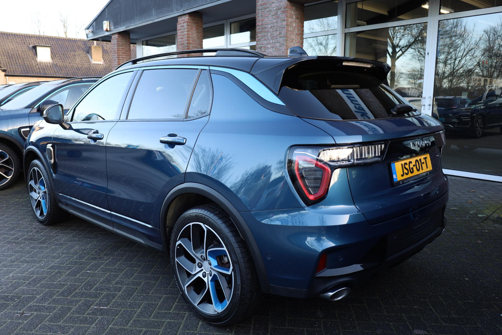 Ontspannen en zorgeloos autorijden, dat doet u met deze Lynk & Co 01. Deze Lynk & Co 01 is voorzien van een hybride motor en gebruikt dus zowel brandstof als elektriciteit. Dat betekent zuinige kilometers en toch maximale prestaties. Bestuurder en bijrijder krijgen een warm welkom: deze Lynk & Co 01 is voorzien van verwarmbare voorstoelen. Een handige voorziening op deze auto is de elektrische achterklep die u op afstand kunt openen. Zicht, licht en toch dicht! Een geweldige rijervaring met het glazen panoramadak. Natuurlijk behoren 20 inch lichtmetalen velgen, LED koplampen, zwarte hemelbekleding, dakspoiler, in delen neerklapbare achterbank en LED-achterlichten ook tot de uitrusting van deze complete auto.