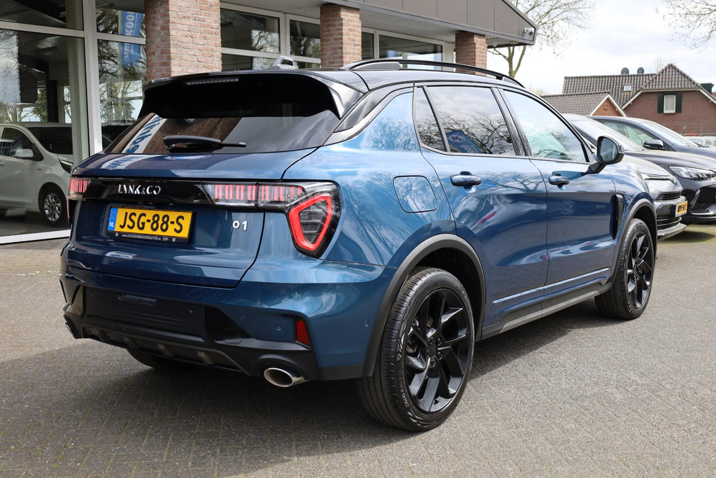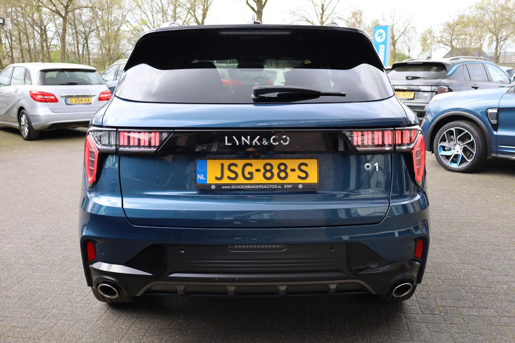 Ontspannen en zorgeloos autorijden, dat doet u met deze Lynk & Co 01. Deze Lynk & Co 01 is voorzien van een hybride motor en gebruikt dus zowel brandstof als elektriciteit. Dat betekent zuinige kilometers en toch maximale prestaties. Bestuurder en bijrijder krijgen een warm welkom: deze Lynk & Co 01 is voorzien van verwarmbare voorstoelen. Een handige voorziening op deze auto is de elektrische achterklep die u op afstand kunt openen. Zicht, licht en toch dicht! Een geweldige rijervaring met het glazen panoramadak. Natuurlijk behoren 20 inch lichtmetalen velgen, LED koplampen, zwarte hemelbekleding, dakspoiler, in delen neerklapbare achterbank en LED-achterlichten ook tot de uitrusting van deze complete auto.