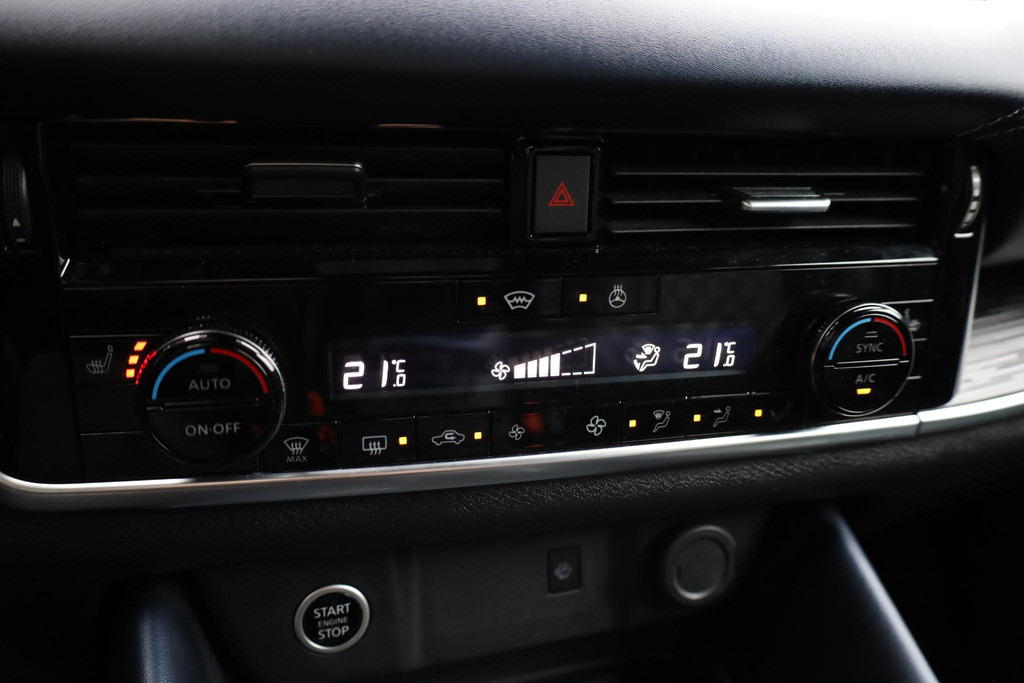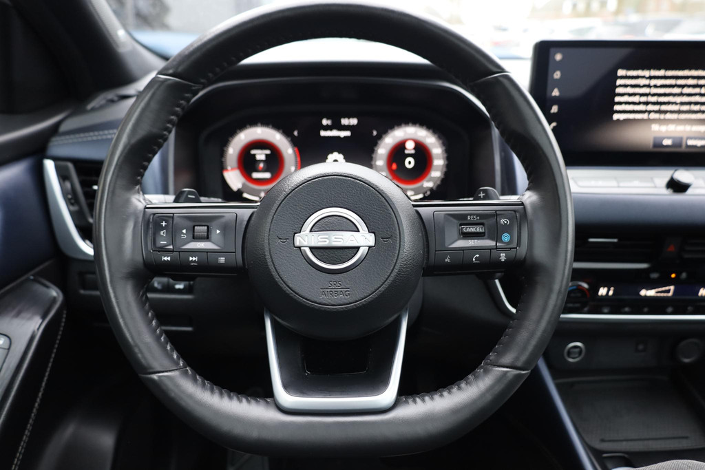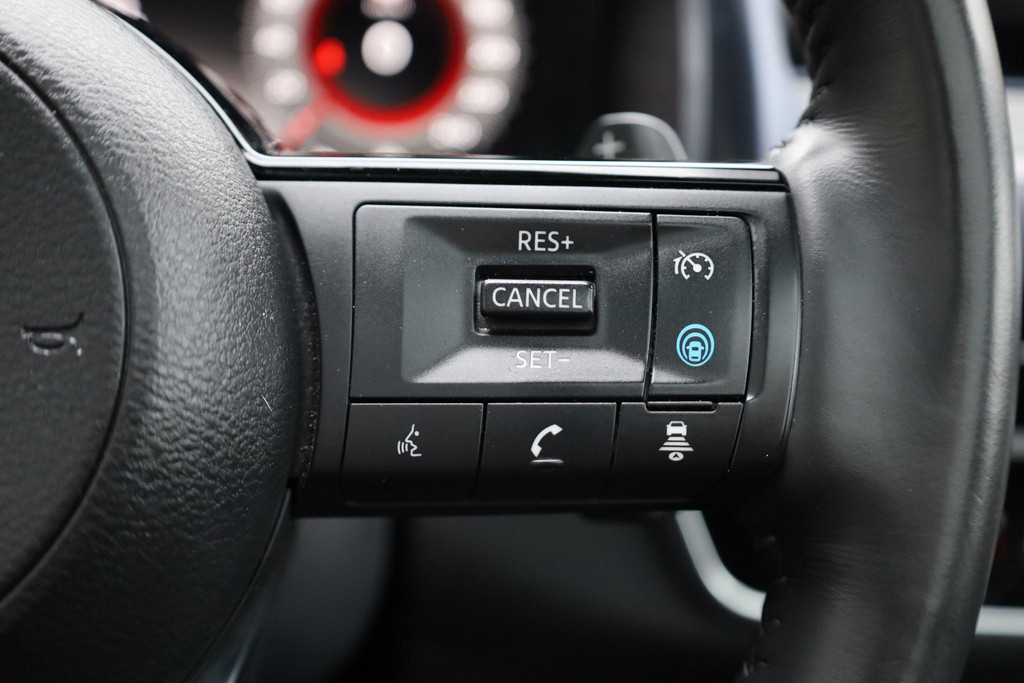 Alle functies die u onderweg nodig heeft, worden permanent geregistreerd en zijn afleesbaar op het digitale dashboard. Elk van de vier camera's op deze auto draagt bij aan het creëren van een onbelemmerd uitzicht van 360 graden rondom de auto. Met adaptive cruise control houdt deze auto automatisch afstand tot uw voorligger. Rijden-stilstaan, rijden-stilstaan. Niks is irritanter en vermoeiender dan filerijden. Daar heeft deze Nissan Qashqai een oplossing voor: de file assistent, die met radarmeting permanent het tempo aanpast op de voorligger. Zelfs als die stopt. In het zeldzame geval van een storing weet u nog eerder dan de monteur wat er mankeert. Uw smartphone met remote services geeft direct inzicht. Wat u ook in deze auto kunt vinden zijn premium audiosysteem, full map navigatiesysteem, achteropkomend verkeer waarschuwing, kruisend verkeer detectie, automatische airconditioning en draadloos opladen.