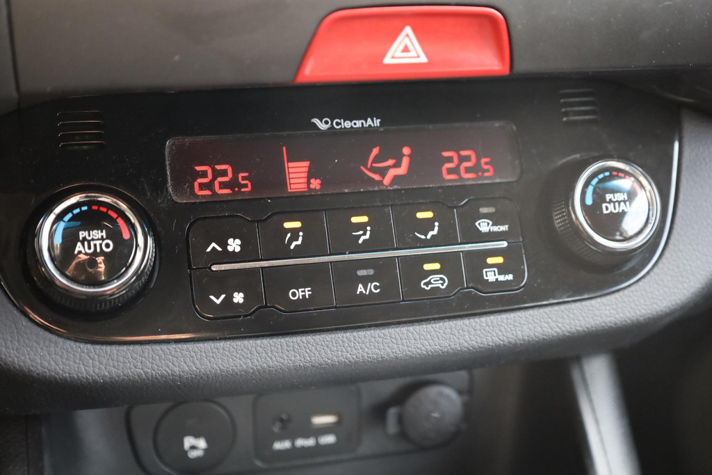 Deze auto kent elke bestemming als z'n broekzak, dankzij het navigatiesysteem. In een auto als deze kunt u niet zonder electronic climate control, zodat de temperatuur altijd goed is. Volumeknoppen, zenderschakelen, muten... U doet alles met de audiobediening op het stuur. Veilig en gemakkelijk. De parkeersensoren vertellen precies hoe ver u kunt gaan. Hoe dichter op een obstakel, hoe sneller de piepjes. Bij slecht weer houdt u graag de handen aan het stuur. De regensensor regelt automatisch hoeveel hulp u van de ruitenwissers nodig heeft. U bent in deze Kia ook voorzien van cruise control, automatisch dimmende binnenspiegel, lederen stuur en versnellingspook en centrale deurvergrendeling met afstandsbediening.