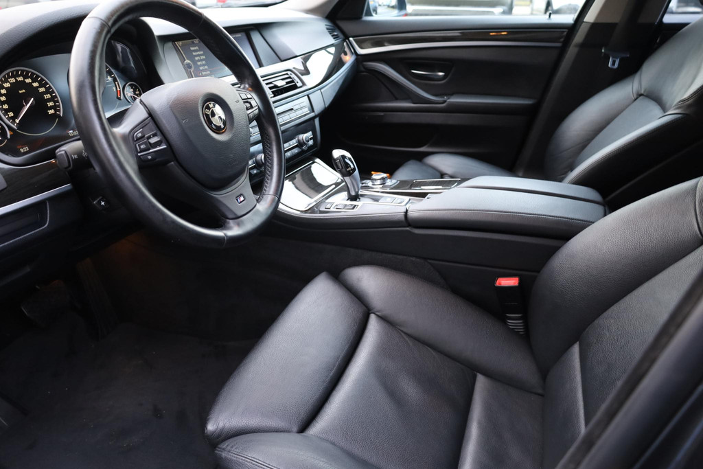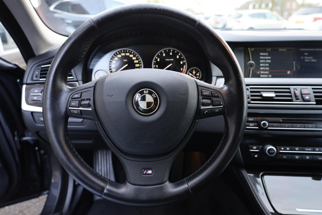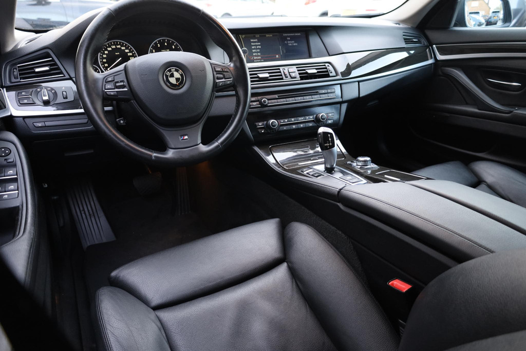 Ontdek de vele kwaliteiten van de BMW 5-serie Touring. Met zijn tijdloze design, zijn krachtige motor en zijn vele veiligheidssystemen laat deze auto u versteld staan. Dankzij de zescilinder benzinemotor en de automatische transmissie, is het autorijden snel en comfortabel. De stijlvolle, luxe uitstraling is inbegrepen in de vorm van leren bekleding. Er is een rijke uitrusting aanwezig in deze auto, waar onder meer ook stoelverwarming bij hoort. Met de krachtige xenonverlichting heeft u optimaal zicht in het donker. Bij de rijke uitrusting horen ook 20 inch lichtmetalen velgen en extra getint glas.