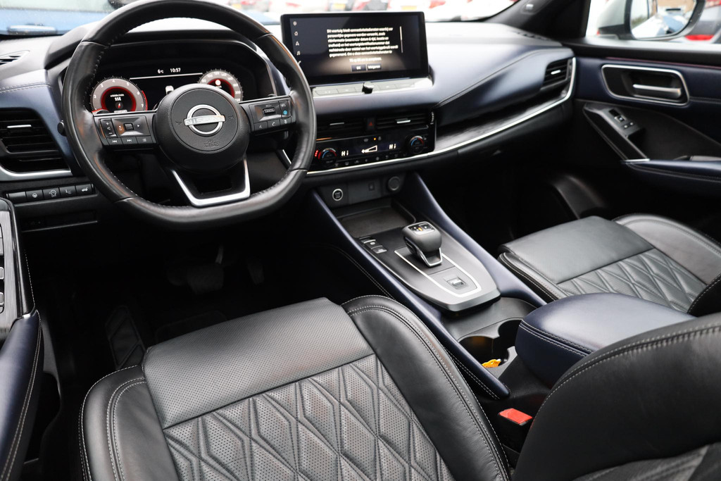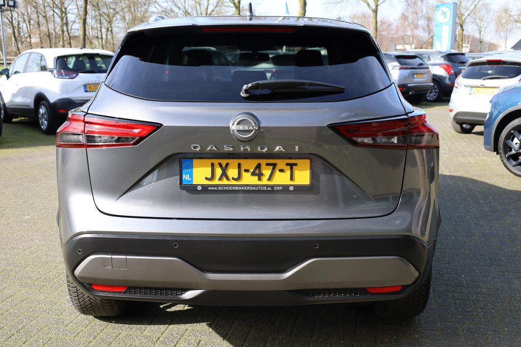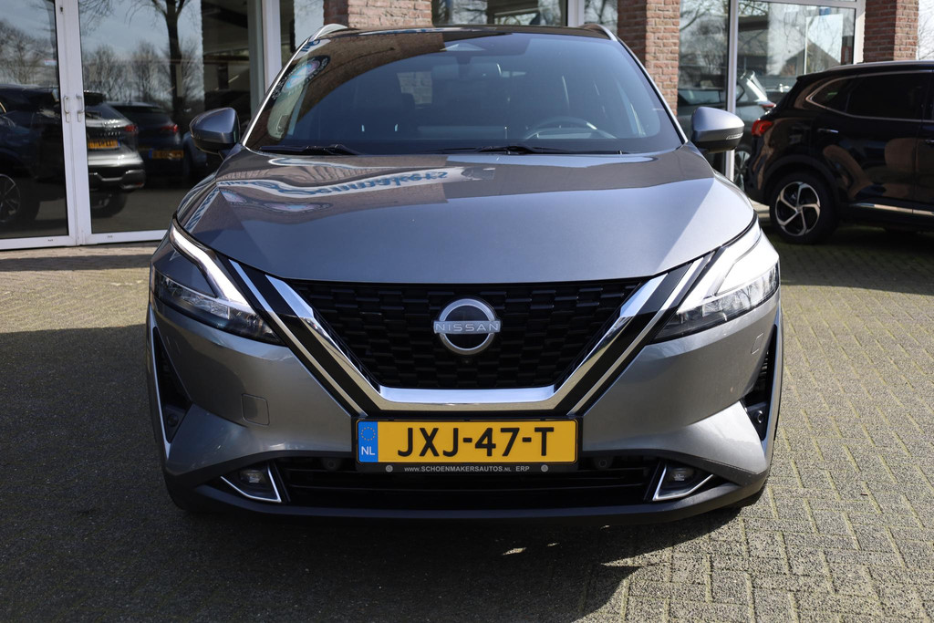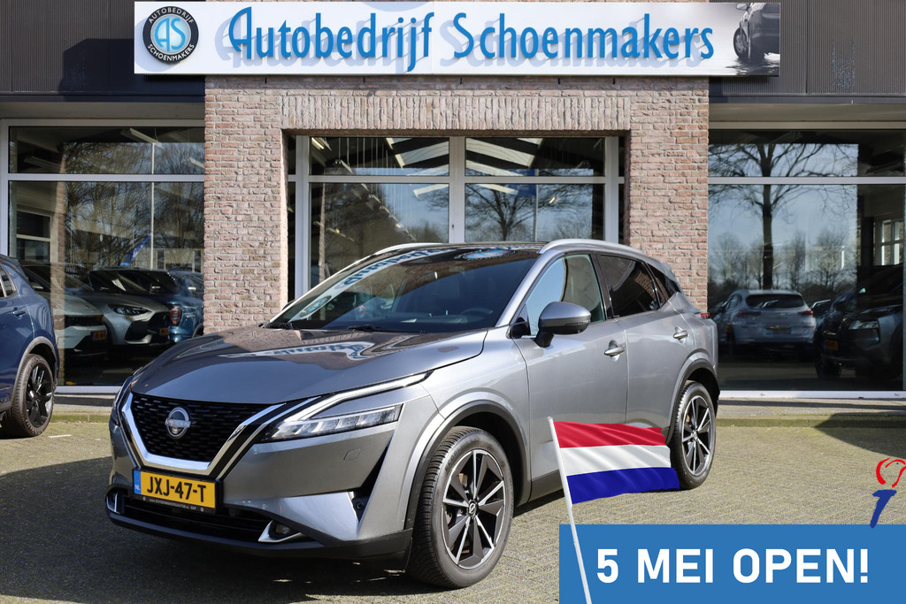 Ontspannen en zorgeloos autorijden, dat doet u met deze Nissan Qashqai. In deze auto vindt u een benzinemotor en een automatische transmissie. Deze Nissan is voorzien van een mooie en comfortabele lederen bekleding. Lekker hoor, die verwarmbare voorstoelen. Helemaal op koude dagen. Bovendien krijgen uw rug en die van uw bijrijder desgewenst extra aandacht door de massagefunctie. Een handige voorziening op deze auto is de elektrische achterklep die u op afstand kunt openen. In weer en wind een cabriosensatie? Dat kan met het riante glazen panoramadak. Het verwarmbare stuurwiel is een teken van ultieme luxe. Deze voorziening is een topklasse auto waardig. De koplampen zijn voorzien van matrix LED-verlichting waarmee u aanzienlijk verder kan kijken in het donker. Het systeem past zelf de lichtstraal aan op het moment tegenliggers verblind kunnen worden. Bij de zeer complete uitrusting van deze auto behoren ook 19 inch lichtmetalen velgen, dakspoiler, extra getint glas, in delen neerklapbare achterbank, LED-achterlichten en verstelbare lendensteunen.