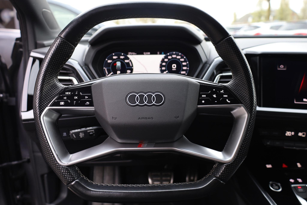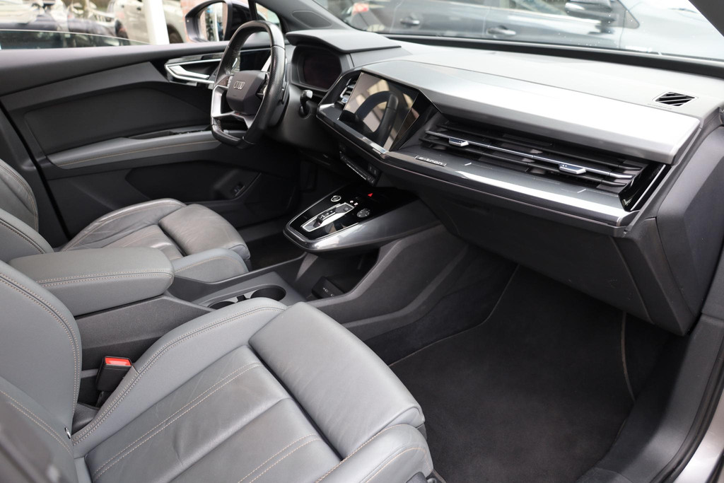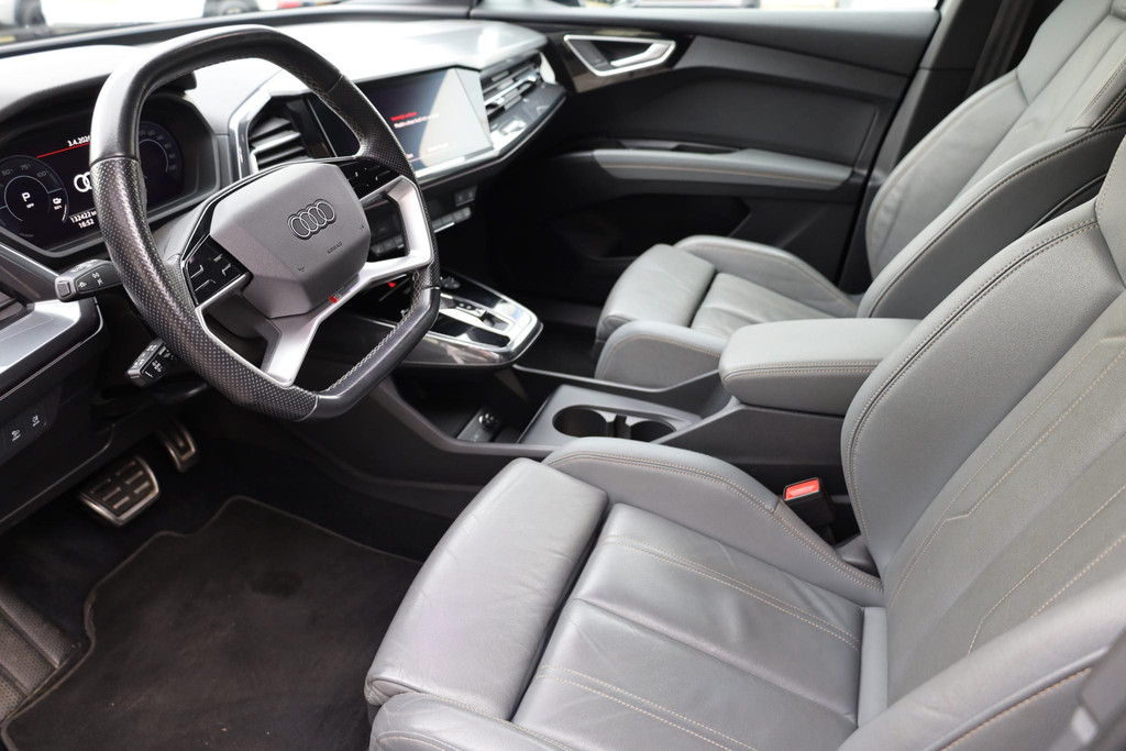 Sportieve prestaties zonder motorgeluid. Ervaar de stille kracht van elektrisch rijden met deze Audi Q4 e-tron. U hoort slechts het lichte gezoem van de elektromotor tijdens het rijden. Houdt u van een sportieve, dynamische uitstraling? Dan komt de S-Line styling als geroepen. Koude start? Niet met de verwarmbare voorstoelen! Altijd een goede zitpositie bij iedere snelheid, dankzij de sportstoelen. De elektrisch bedienbare achterklep opent met een druk op de knop. De geavanceerde matrix LED-verlichting in de koplampen levert maximaal helder zicht en past zich subtiel aan zodra er een tegenligger komt. Zonder lichtkwaliteitsverlies! Bij de uitrusting van deze Audi horen onder meer 21 inch lichtmetalen velgen, sportonderstel, zwarte hemelbekleding, neerklapbare achterbank en LED-achterlichten.