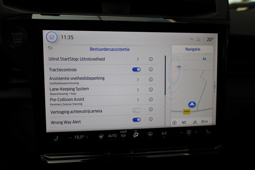 Deze Ford is voorzien van verschillende intelligente veiligheidsvoorzieningen. Ze kijken tijdens het rijden als het ware met u mee, ze signaleren potentieel gevaarlijke situaties en in een aantal gevallen kunnen ze ook ingrijpen. In het instrumentarium ziet u tijdens de rit ook de belangrijkste verkeersborden aangegeven, die de auto automatisch voor u leest. Met het Lane-keeping systeem komt u nooit per ongeluk buiten de rijstrook. Een noodstop maken doet u liever niet. Maar áls het nodig is, geeft de Brake Assist maximale ondersteuning.